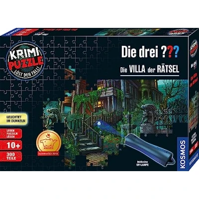 KOSMOS 697976 Crime Puzzle: the Three ??? Villa of Riddles, glows in dark, 300 pieces with UV lamp, reading puzzles solving puzzles, for children from 10 years
