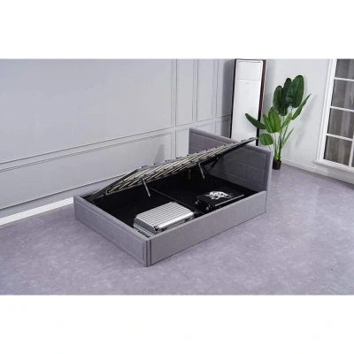 KOSY KOALA Grey Upholstered Storage Ottoman gas side lift bed Natural Linen Fabric 3ft single (3FT SINGLE)