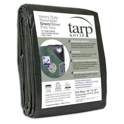 Kotap 10 ft x 15 Heavy Duty 12 by Cross Weave 8 mil Reversible Green/Silver Poly Tarp, Item: TGS 1015