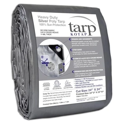 Kotap 24 ft x Heavy Duty 14 by Cross Weave UV Blocking 10 mil Silver Poly Tarp, Item: TRS 2424
