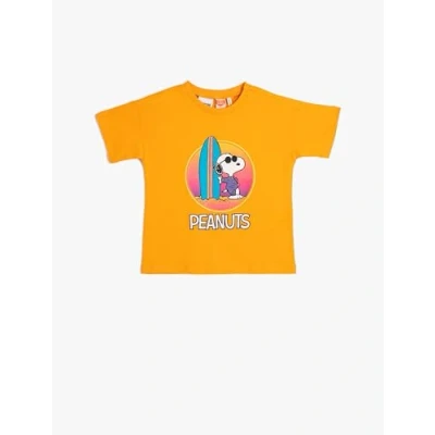 Koton Baybboys Snoopy T Shirt Licenced Short Sleeve Crew Neck Cotton Shirt, Orange(214),