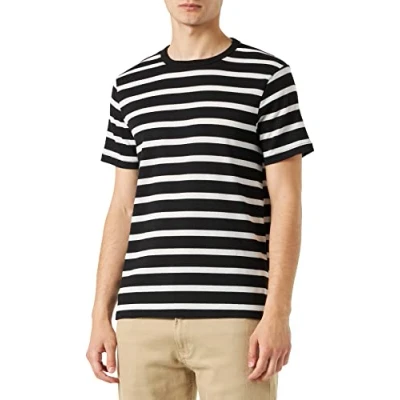 Koton Men's Basic T Shirt Crew Neck Short Sleeve, Black Stripe (9s9), M