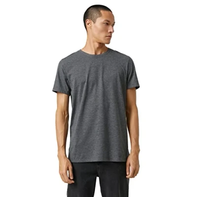 Koton Men's Basic T Shirt Crew Neck Short Sleeve Cotton, Grey (031), S