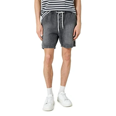 Koton Men's Drawstring Shorts Slim fit Pocket Detailed tag Printed, Grey (027), S