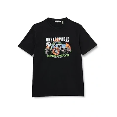 Koton Men's Printed T Shirt Race Themed Crew Neck Short Sleeve, Black (999), S