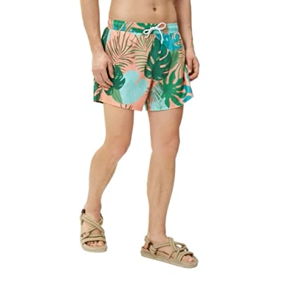Koton Men's Sea Shorts Flamingo Printed Drawstring Pocket Detailed Swim Trunks, Mint Design(911), S