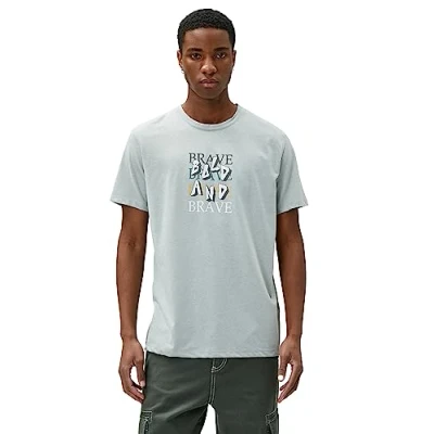Koton Men's Slogan Printed T Shirt Crew Neck Short Sleeve, Grey (031), S
