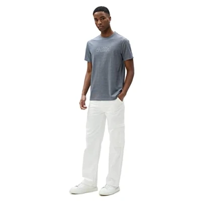 Koton Men's Slogan Printed T Shirt Crew Neck Slim Fit Short Sleeve, Navy (715), L