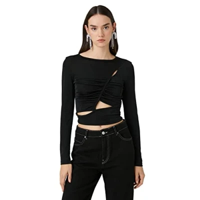 Koton Women's Long Sleeve Draped Cut Out Detail Blouse, Black (999), XL