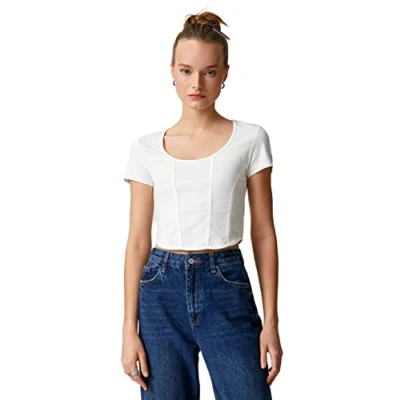 Koton Women's Short Sleeve Cotton Round Neck Crop T Shirt, Ecru (010), Large