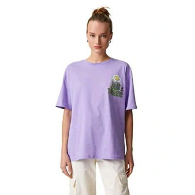 Koton Women's Short Sleeve Crew Neck Cotton Back Printed T Shirt, Purple (372), Large