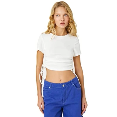 Koton Women's Short Sleeve Crop T Shirt, Ecru (010), XS