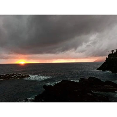 Koumu Cinque Terre Manarola Italien Meer Sonnenuntergang stürmisch Foto groß Druck Poster Wandkunst Dekor Bild