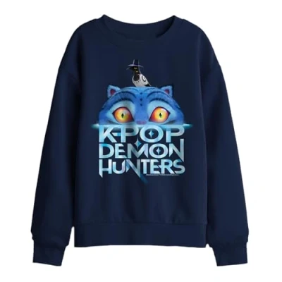 Kpop Demon Hunters Derpy Tiger Sinking Logo Kids Sweatshirt, Navy, 12 13