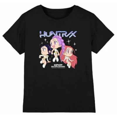 Kpop Demon Hunters Huntrix Chibi Group Kids T Shirt, Black, 9 11