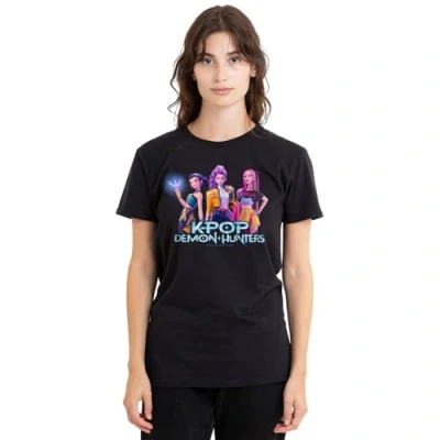 KPOP DEMON HUNTERS LADIES T-SHIRT FOR WOMEN: Crafted from premium ringspun cotton, our T-shirts are the epitome of timeless style. Embrace your individuality with a look as distinct as you are. Created for everyday wear, our tees feature a breathable all-season mid-weight weave, ensuring comfort in a versatile tagless design. Beyond ordinary, our short-sleeve tee is built to last. VERSATILE FIT: Whether you're an icon, influencer, or a myth in the making, discover a facet for every version of yourself. Pre-shrunk for the perfect fit, our tees are meant to be worn daily. With a crew neckline, short sleeves, regular silhouette, and straight hemline, this top is designed for comfort. Casual and classic, it's the ideal choice for any occasion. Only good vibes here. OFFICIALLY LICENSED - Discover exeptional style with our officially licensed pop culture designs! Created by our in-house graphic art team, each piece is a proud representation of craftsmanship, meticulously designed and printed in the UK. Showcase your favorite characters and themes, making every wear a statement of your unique style! EFFORTLESS CARE: From school and work to hanging out with mates, our classic women's tee is tailored for the real world. No complicated care instructions – simply wear, wash, repeat. Launder cold and tumble or hang dry to maintain the longevity of your new favourite shirt. PERFECT GIFTING OPTION: Ideal for sharing the love, our thoughtfully crafted and vividly rendered T-shirts are perfect for any superfan. Kit your loved ones out for their next birthday, holiday, themed event, Christmas or special occasion.