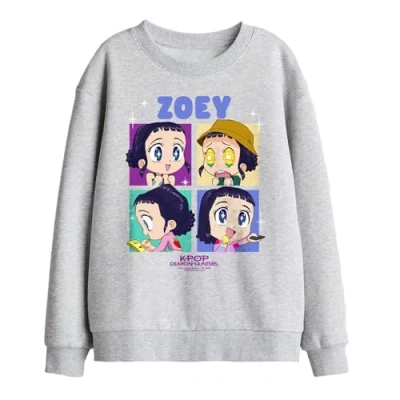 Kpop Demon Hunters Huntrix Zoey Chibi Boes Kids Sweatshirt, Heather Grey, 12 13