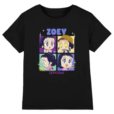Kpop Demon Hunters Huntrix Zoey Chibi Boes Kids T Shirt, Black, 7 8