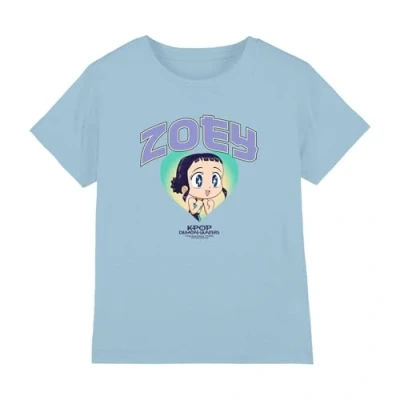 Kpop Demon Hunters Huntrix Zoey Collegic Kids T Shirt, Light Blue, 9 11