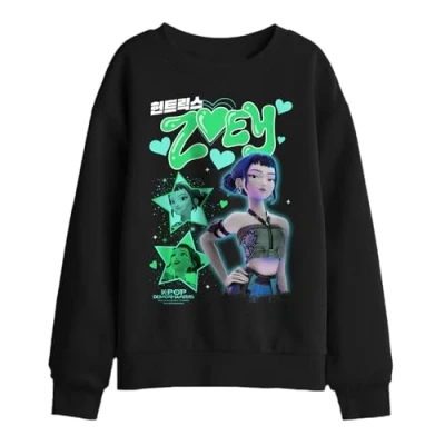 Kpop Demon Hunters Huntrix Zoey Popstar Kids Sweatshirt, Black, 12 13