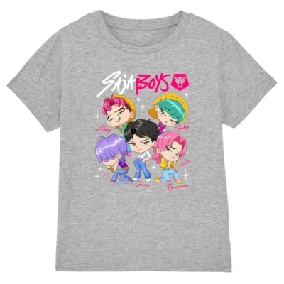 Kpop Demon Hunters Saja Boys Chibi Poster Kids T Shirt, Heather Grey, 12 13