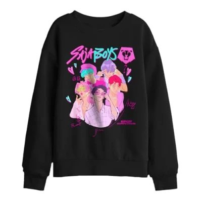 KPOP DEMON HUNTERS KIDS BOYS/GIRLS SWEATSHIRT: A great fit for boys and girls alike, this unisex sweatshirt is perfect for everyday adventures — a fun and comfy way for kids to show off their favourite characters. VERSATILE FIT: Made for movement and comfort, this kids' crew neck sweatshirt features a regular fit, soft fabric, and classic silhouette. Pre-shrunk for the perfect feel from day one — it’s the go-to layer for school days, playdates, or weekend fun. Only good vibes here. OFFICIALLY LICENSED: Step into standout style with our officially licensed pop culture designs! Created by our in-house graphic art team and proudly printed in the UK, each piece reflects quality craftsmanship. Celebrate your favourite characters with designs that make every wear a bold statement of your unique style. EFFORTLESS CARE: Made for active boys and girls, this kids' sweatshirt is built for everyday wear — from school to playtime. No complicated care needed: just wear, wash, and repeat. For lasting comfort and colour, wash cold and tumble or hang dry. A BRILLIANT GIFT IDEA: Whether it's for a birthday, holiday, or just because, this kids' sweatshirt makes the perfect gift for any young fan. Great for school days, weekend adventures, or relaxing at home — it's a thoughtful and practical present they'll love.