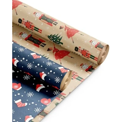 CREASE-FREE MAGIC – Wrap your Christmas gifts with ease! Made from dense, high-quality Kraft paper, these rolls keep your presents looking pristine. Folds won’t leave creases easily, and the paper resists tearing, even with those tricky, odd-shaped gifts. No more holiday wrapping headaches! KRAFT HOLIDAY QUALITY – Crafted from durable recycled Kraft paper, our 44.5CM x 25M rolls boast a sturdy 100gsm thickness. Strong enough to handle the hustle and bustle of the season, it keeps your gifts protected whether placed under the tree or sent off to loved ones near and far. FESTIVE GIFT WRAP – Unwrap the magic of Christmas with our charming Kraft & Co wrapping paper! With nostalgic, homemade designs, these rolls capture the festive spirit and make gift-giving even more special. Wrap everything from stocking stuffers to large presents with our high-quality, festive paper. BEAUTIFUL CHRISTMAS DESIGNS – Choose from 15 joyful designs, including Nutcracker, Reindeer, Santa, Snowflake, and more! Whether you're going for classic stripes or playful holiday characters, Kraft & Co’s unique designs will bring your Christmas wrapping to life and spread holiday cheer. VERSATILE & FESTIVE – While perfect for Christmas, our wrapping paper’s charming designs are also great for other celebrations like birthdays, weddings, and baby showers. Plus, it’s ideal for holiday crafts—easy to draw on and customise to make every project feel extra magical!