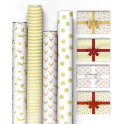 Kraft & Co Christmas Wrapping Paper Rolls 4 Pack (69cm x 8M Each) Recyclable Xmas Gift Wrap, Festive Eco Friendly for Gifts, Arts Crafts (32M Total) (Pure New)