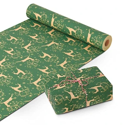 Kraft & Co Wrapping Paper Roll Quality Festive Designed Eco Friendly, Recyclable Biodegradable Multipurpose Ideal for Gifts, Arts Crafts Christmas (44.5CM x 25M)