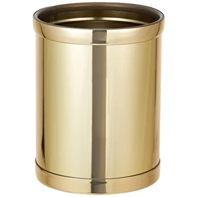 Mylar polished Brass Color, 11" Round Waste basket Top and bottom bumpers to avoid any damaging bumps Great for bathroom and other home use High Quality Mylar covering Made in USA