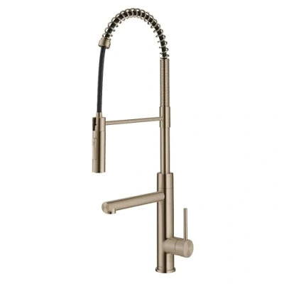 KRAUS Artec Pro Commercial Style Pull-Down Single Handle Kitchen Faucet with Pot Filler in Spot Free Antique Champagne Bronze, KPF-1604SFACB COMMERCIAL-STYLE FAUCET with an industrial open-coil spout, pull-down sprayer, and rotating pot filler offers a distinctively professional look that will elevate the style of any kitchen – DIMENSIONS: Faucet Height: 27 1/2" – Spout Height: 7" – Spout Reach 8 1/2" – Sprayer Height 11" – Sprayer Reach 10 1/4" – Swivels 360° for a full range of motion – Eco-Friendly Flow Rate 1.8 gpm – Swivels 360° for a broad range of motion PULL-DOWN SPRAYER with easy-retract hose and swivel adapter for a full range of motion – HEAVY-DUTY CONSTRUCTION with lead-free brass water lines, solid brass sprayhead, and all-metal body – 2-FUNCTION FAUCET with POT FILLER for aerated stream for filling pots and pitchers and SPRAYER for blasting away stubborn food residue – HIGH-ARC DESIGN helps prevent water from hitting the pot filler – Generous spout height for washing large items INDEPENDENT ROTATION of faucet spout and pot filler provide a full range of motion, so you can position the faucet for any kitchen task – EASY-CLEAN RUBBER NOZZLES allow you to easily wipe away build-up for long-lasting performance – WEAR-RESISTANT FINISH stands up to everyday use, helping resist rust, corrosion, and fading – Available in two-tone combinations as well as SPOT-FREE Finish options to help prevent water spots and fingerprints SMART HANDLE DESIGN operates with 90° forward rotation, allowing for installation in tighter spaces with no backsplash clearance needed – PREMIUM CERAMIC CARTRIDGE tested over 500,000 cycles to help ensure long-lasting leak-free use – SINGLE HOLE INSTALLATION allows you to install this faucet with most kitchen sinks on the market, Weight: 11.99976092066 pounds, Manufacturer: Kraus