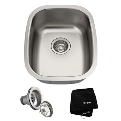 Kraus KBU17 15 inch Undermount Single Bowl 18 Gauge Stainless Steel Kitchen Sink