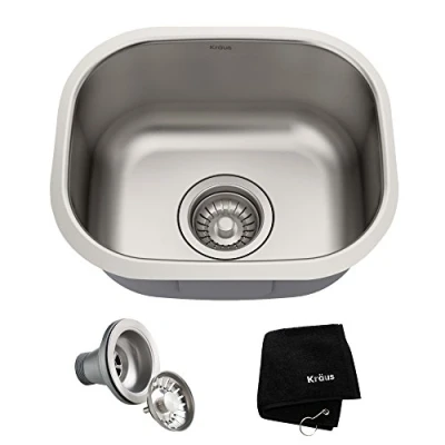 Kraus KBU16 15 inch Undermount Single Bowl 18 Gauge Stainless Steel Kitchen Sink