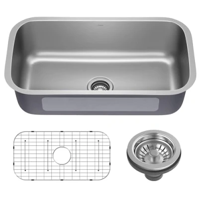OUTER SINK DIMENSIONS: 32 3/8" L x 18 1/2" W x 9" D – BOWL DIMENSIONS: 30 3/8" L x 16 5/8" W x 8 5/8" D – MINIMUM CABINET SIZE: 36” KIT INCLUDES: Stainless steel kitchen sink, protective stainless steel bottom grid, stainless steel drain assembly with strainer LASTING DURABILITY: Made with heavy-duty high-performance T304 18-gauge stainless steel that stands up to everyday use and helps resist dents and damage UNDERMOUNT INSTALLATION creates a seamless transition from sink to countertop with no exposed mounting deck to trap debris – Makes cleaning easier by allowing you to wipe water and crumbs right into the sink SPACIOUS SINGLE BOWL offers generous space for large cookware, easily fits baking sheets laid flat, stockpots, and stacks of dishes, Weight: 27.33 Pounds, Manufacturer: Kraus