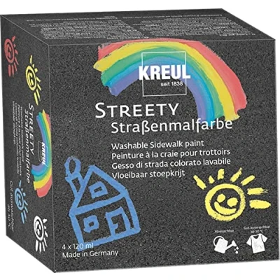 Kreul 43100 Streety Street Paint Set, 4 Colours with 120 ml Each, Washable Liquid Chalk for Painting Brush or Roller, Chalk, Vegan, Dermatologically Tested,