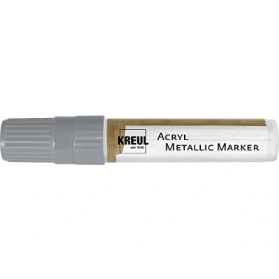 Metallic permanent acrylic paint in silver Dimensionally stable 15 mm chisel tip for extra-wide lines Water-based, opaque, non-fading For painting wood, paper, cardboard, polystyrene, terracotta, glass, clay, metal, dried concrete, plastic, film, rubber Waterproof and weatherproof on absorbent surfaces, Manufacturer: Kreul