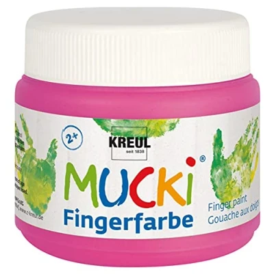Kreul Mucki 23127 Luminous Neon Finger Paint 150 ml in Squeaky Pink, Water Based, Paraben Gluten Lactose and Vegan, Washable, Can be Painted with Brush Fingers