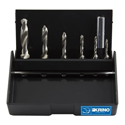 Krino 19020213 HSS Combi Screw Tap Bits with 1/4 inch Hexagonal Shank for Steel and Metals, 7 Piece Set