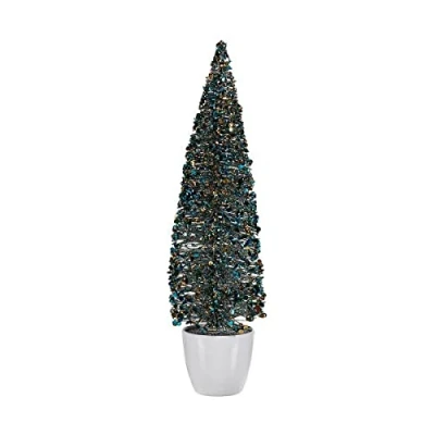 This 10 x 38 x 10 cm plastic Christmas tree, in blue and gold color, is perfect for decorating your home during the holidays. Ideal for a table or a shelf, it is easy to maintain and store, adding a festive and elegant touch to your decor.