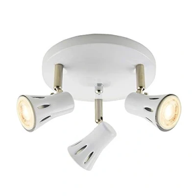 KRIUS Modern 3 Way Decorative Gloss White with a Satin Chrome Trim GU10 LED Adjustable Dimmable Round Ceiling Spotlights