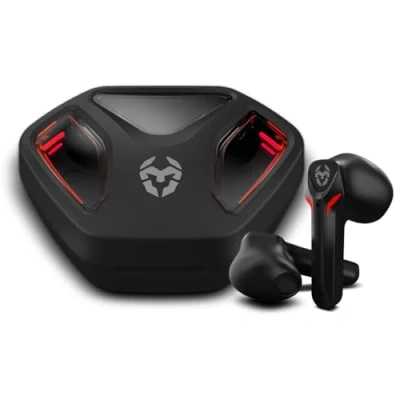 KROM KALL in Ear Gaming Stereo Headset, Built Microphone, Bluetooth 5.3 Zero Latency, Push to Talk, Ergonomic Design, 12 Hours Battery Life, Charging Case, USB Type C Cable Included, Black