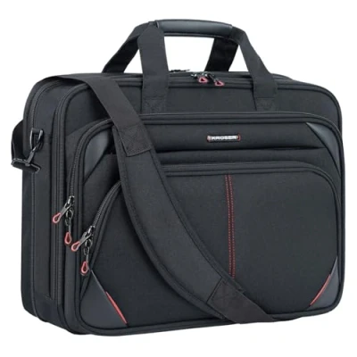 KROSER Laptop Bag 15.6 Inch Briefcase Messenger Water Repellent Computer Case Shoulder Durable Tablet Sleeve with RFID Pockets for Business/College/Women/Men Black/Red