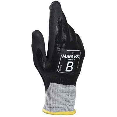 KRYTECH 600 Nitrile Coated Work Gloves provide Cut Protection with Excellent Grip and Protect the Skin from Very Oily Environments SAFETY GLOVES for Multi-Purpose use Garage/Workshop, Bodyshop, Parts, Maintenance, Assembly Cutting, Glass Work, Windows Fitting, Cutting, Stamping CUT & OILPROOF with Excellent Comfort and Grip & Proof Technology, repeals oil penetration, reduces dermatitis while providing full cut protection, Abrasion Resistance and Unbeatable fingertip sensitivity THE KRYTECH 600 Comes in Four Sizes 7, 8, 9, 10 Mapa Professional a Worldwide Brand in Hand Protection, Providing Workforces Highly Tested and Cost-Efficient Work Gloves with Greater Comfort and Safety.