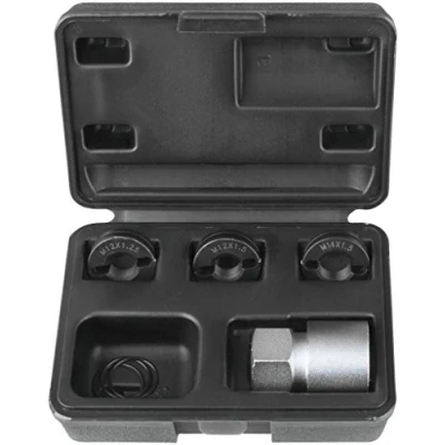 For re-cutting and cleaning damaged external thread. Ideal combination for wheel bolts. Ideal for hard-to-reach areas. External hexagon drive: 24 mm. In a sturdy plastic case.