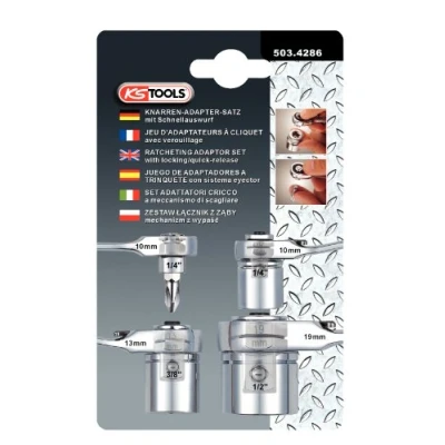 FlankTraction profile (12 point) Suitable for GEAR spanners Square drive adaptor to DIN 3120 - ISO 1174 with ball lock For bits to DIN 3126 / C 6,3 Chrome plated and mirror polished, Manufacturer: KS Tools