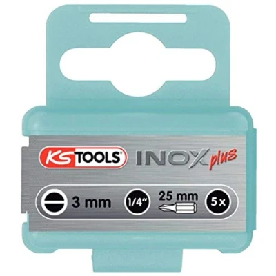 KS Tools 910.2233 1/4" STAINLESS STEEL bit for slotted screws, 25mm, 3mm, pack of 5