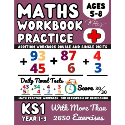 KS1 KS2 / Year 1 Year2 3, Maths Book for 5 8 Olds, Addition, Single Double Digits, Kindergarten, Grades 2 Digit Addition Practice Workbook