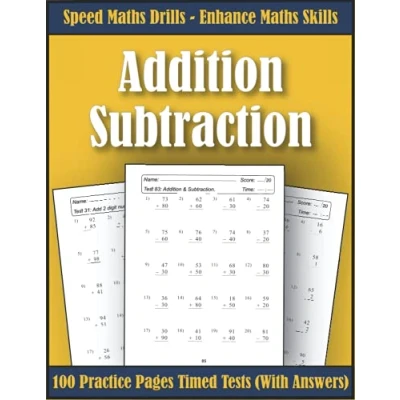 KS1 Maths Addition and Subtraction Year 2: 100 Practice Pages of Timed Tests Answer Key Included Add Subtract Single Digit, Double Digit Workbook for Children Ages 6 7 Olds Grade 1