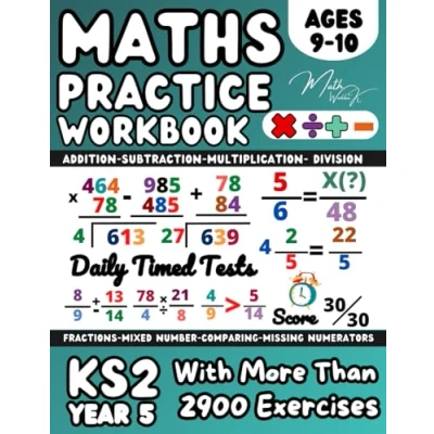 KS2 Maths Book for 9 10 Year Olds, 5 Maths, Addition, Subtraction, Multiplication, Division, Operations with Fractions: Practice workbook Home Learning and Revison