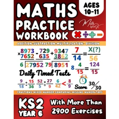 KS2 Year 6 Maths Workbook, Addition, Subtraction, Multiplication, Division, Fractions , Mixed number, Comparing Fractions, Missing Numerators: ... with Answers and Explanatory Examples